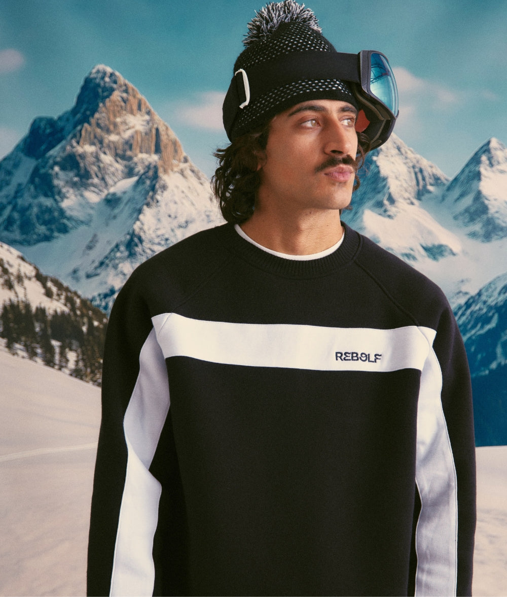 Una colección inspirada en el espíritu de los Juegos Olímpicos de Invierno, que fusiona dos de los deportes más grandiosos jamás inventados: el golf y el esquí alpino. Combina influencias de la moda de los 80, prendas llamativas y coloridas, y la identidad de equipos clásicos de deportes de invierno, reinterpretada a través de la estética moderna del golf de Rebolf.